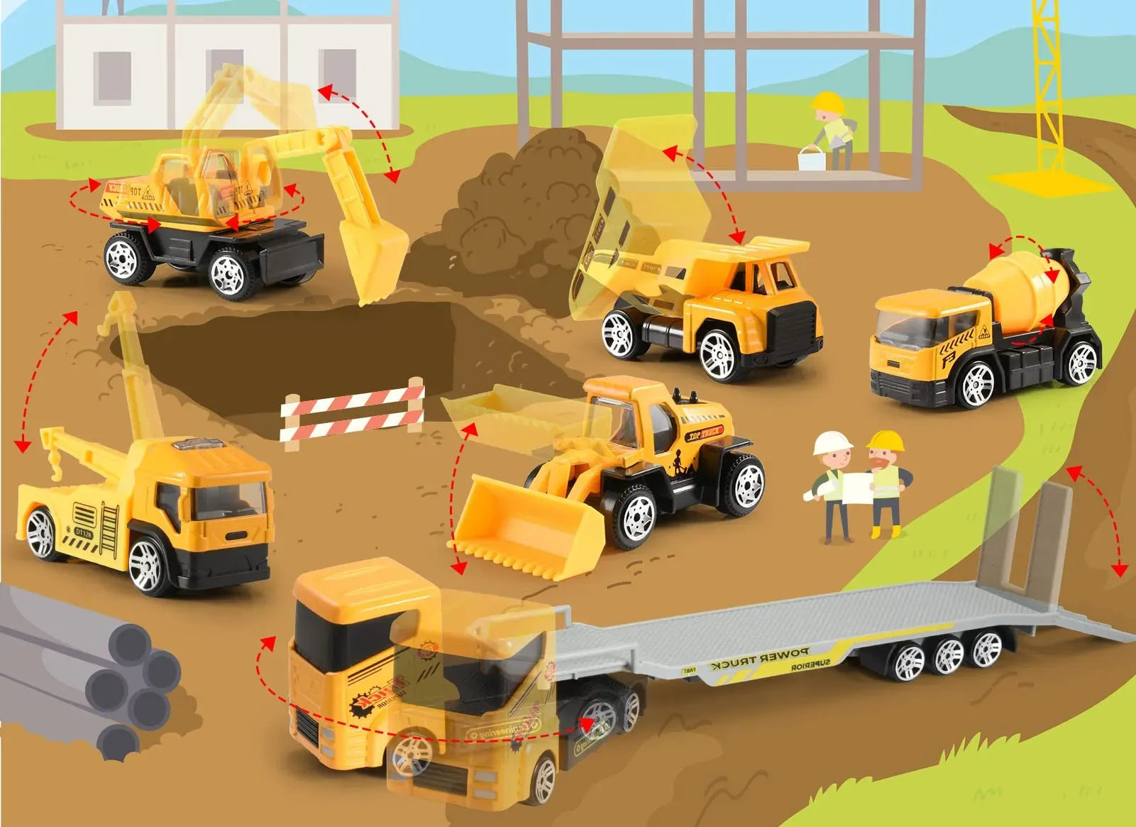 - Alloy Material & Perfect Simulation: Made with high-quality alloy, these construction vehicles are strong and drop-resistant. Their movable joints allow kids to simulate real vehicle maneuvering, promoting fine motor skills.